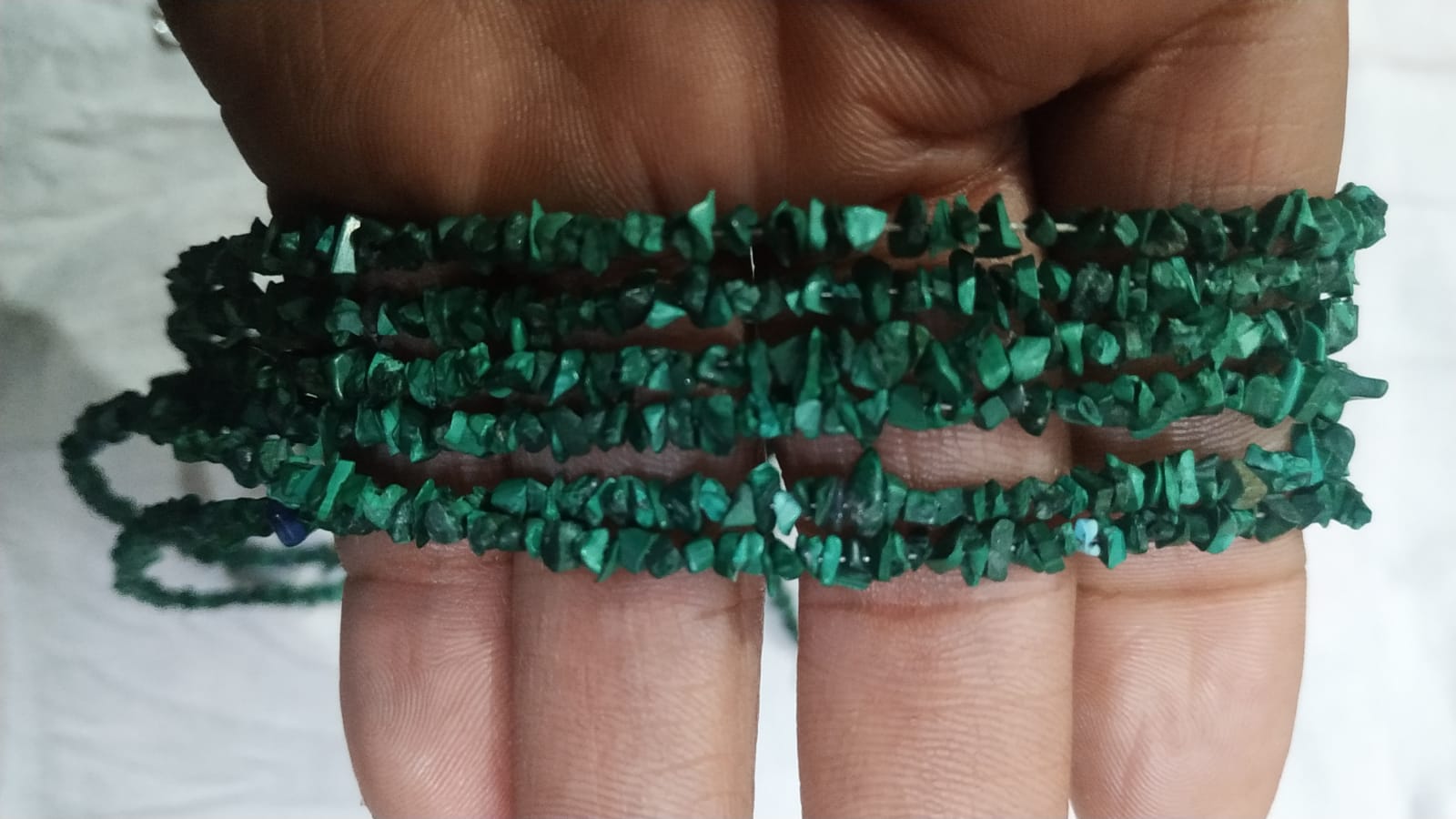 Malachite Uncut Beads Necklace (3–4 mm) | 14–15 Inch | Natural Stone | Unisex