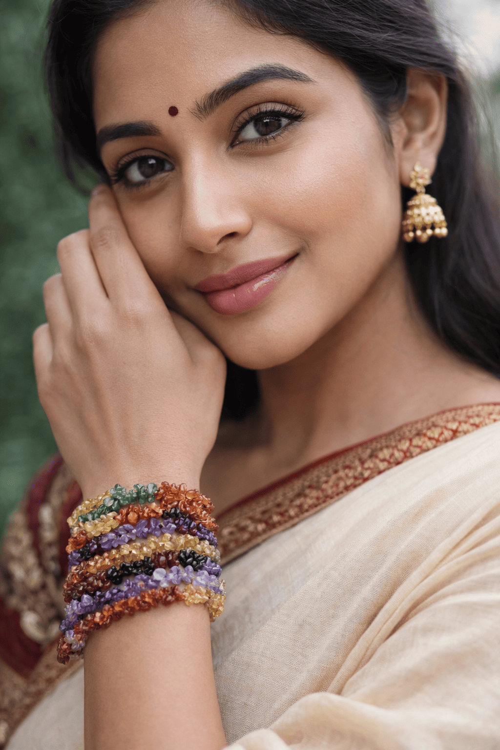 Natural multicolour uncut beads crafted for an earthy, raw look.